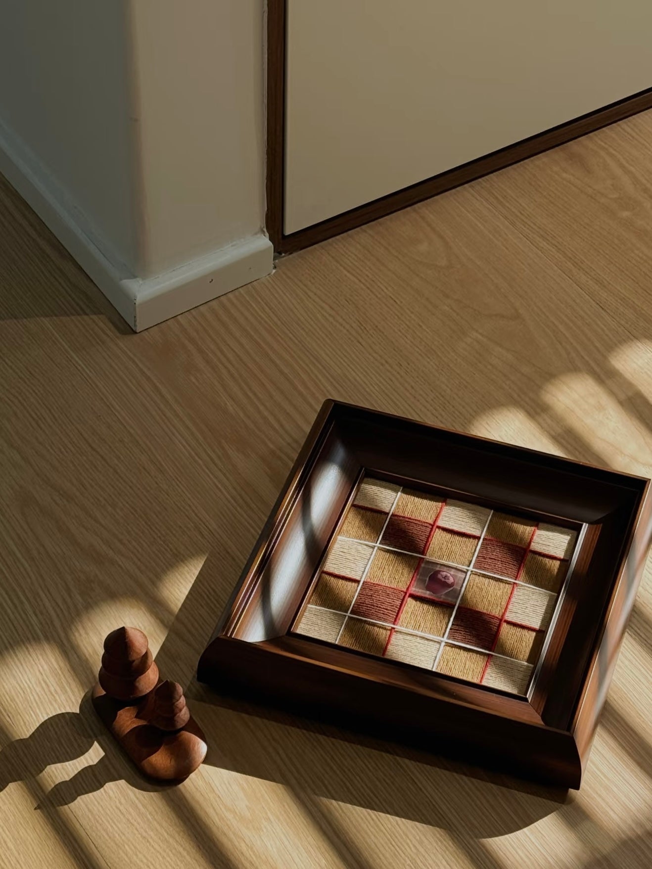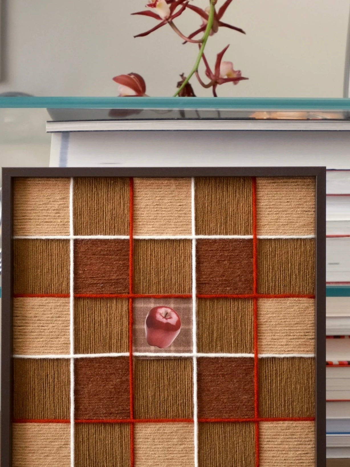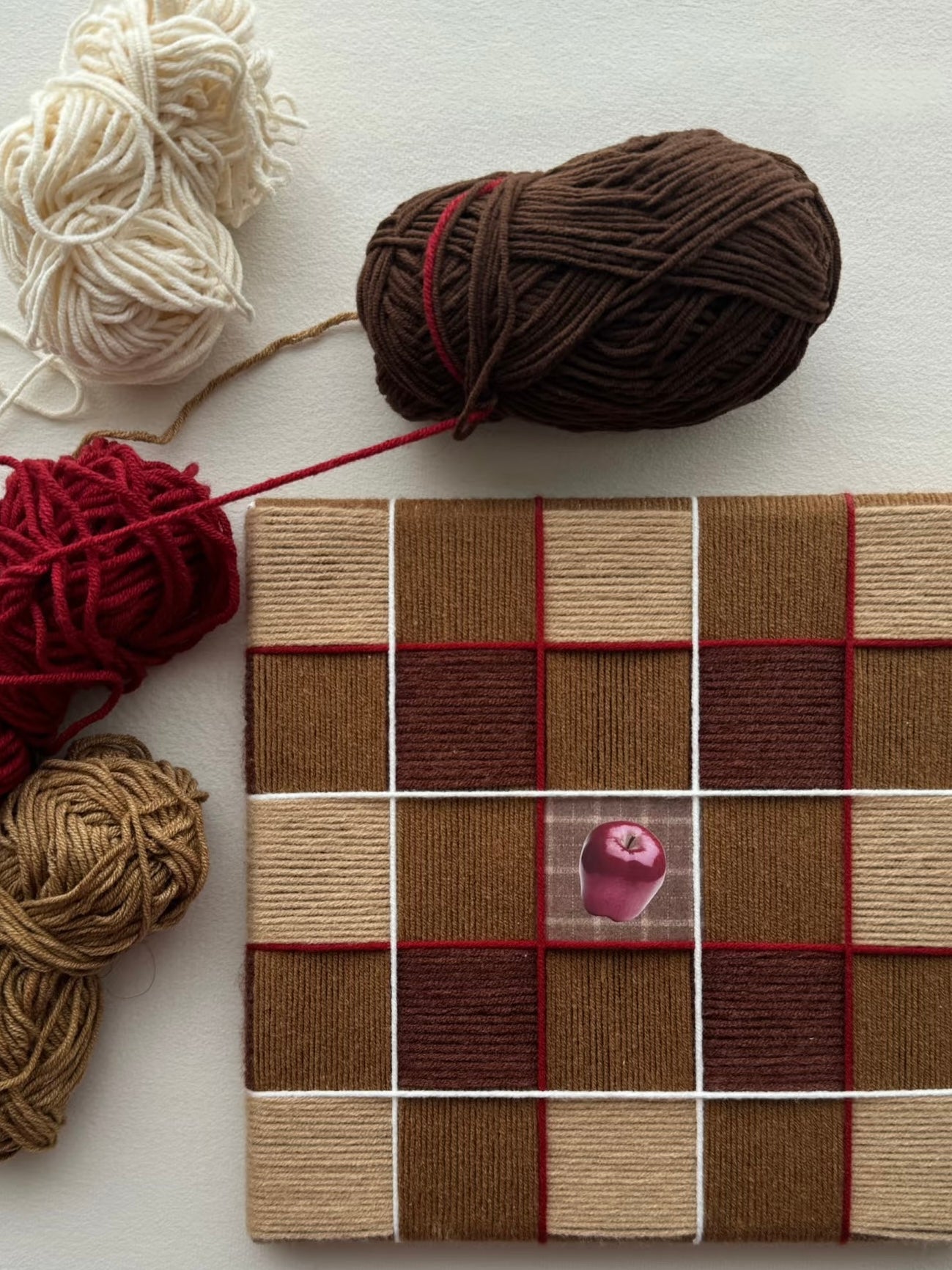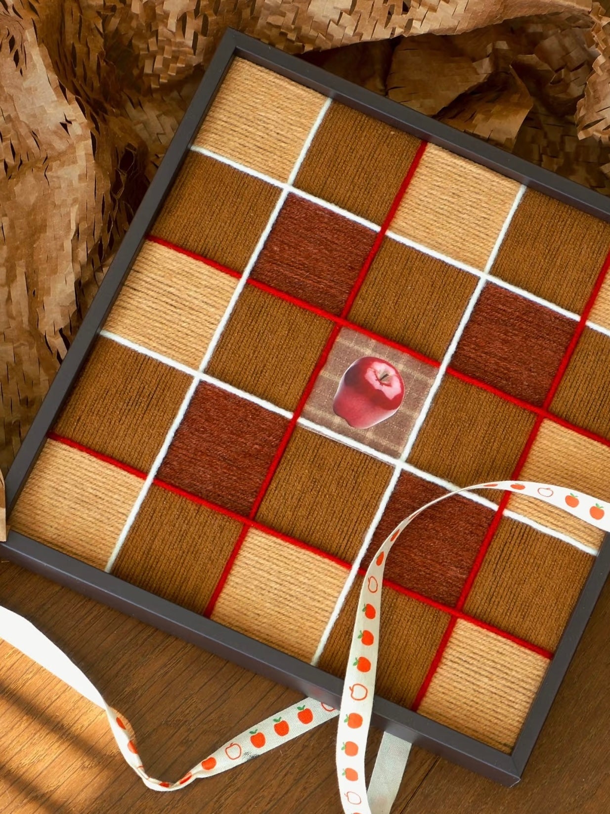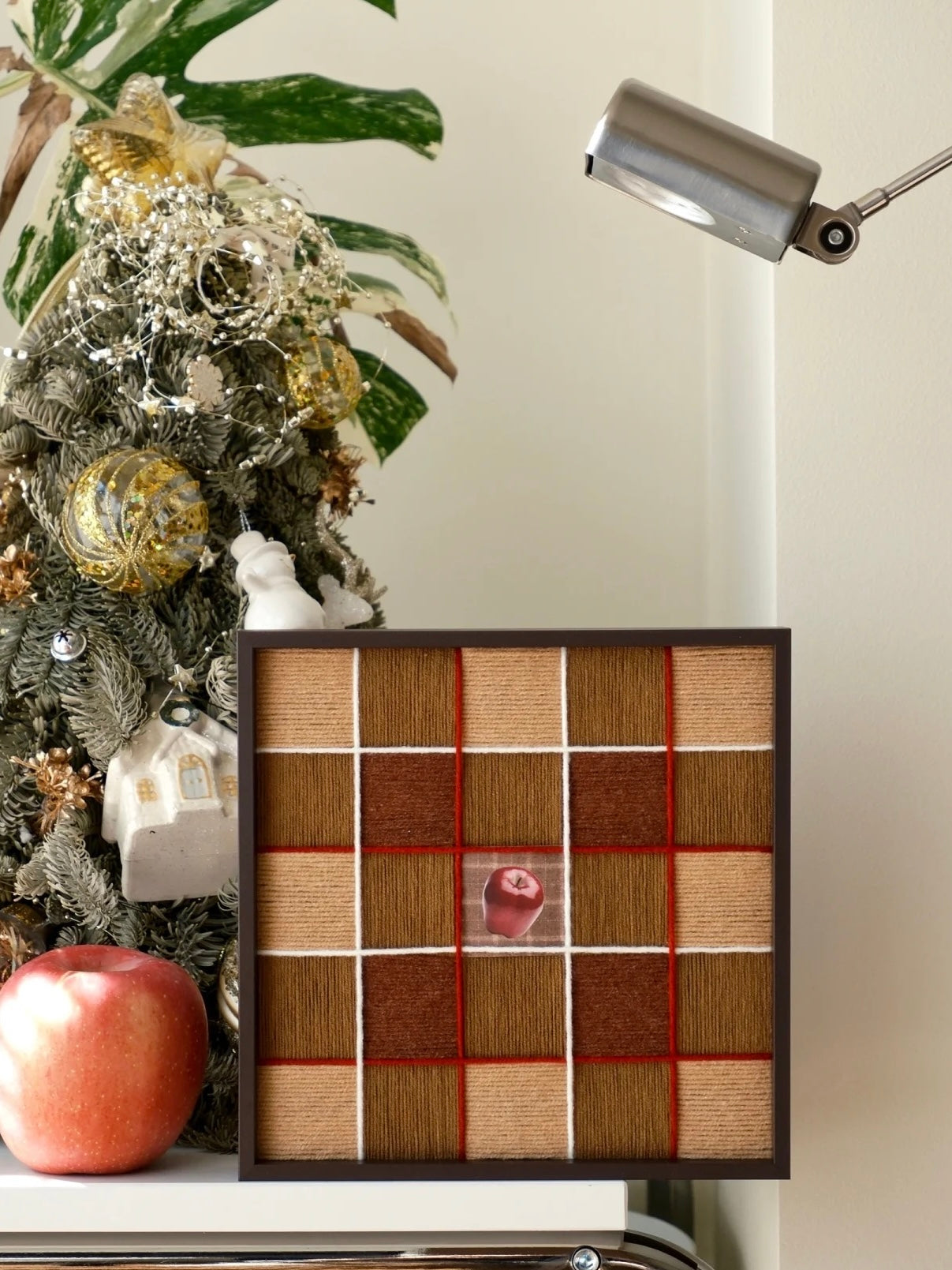 Invite the magic of Christmas hearths into your home with our 30 × 30 cm Fireside Ember wall art panel. Handwoven from ultra-soft milk-cotton yarn in chestnut, bronze and desert-sand tones, accented with festive red and white grid lines, it evokes bonfires, whispered chimney warmth and cozy fireside glow. Framed in sleek ebony wood with hidden hangers, this tapestry is ready to elevate mantels, nooks or gift lists with seasonal charm.