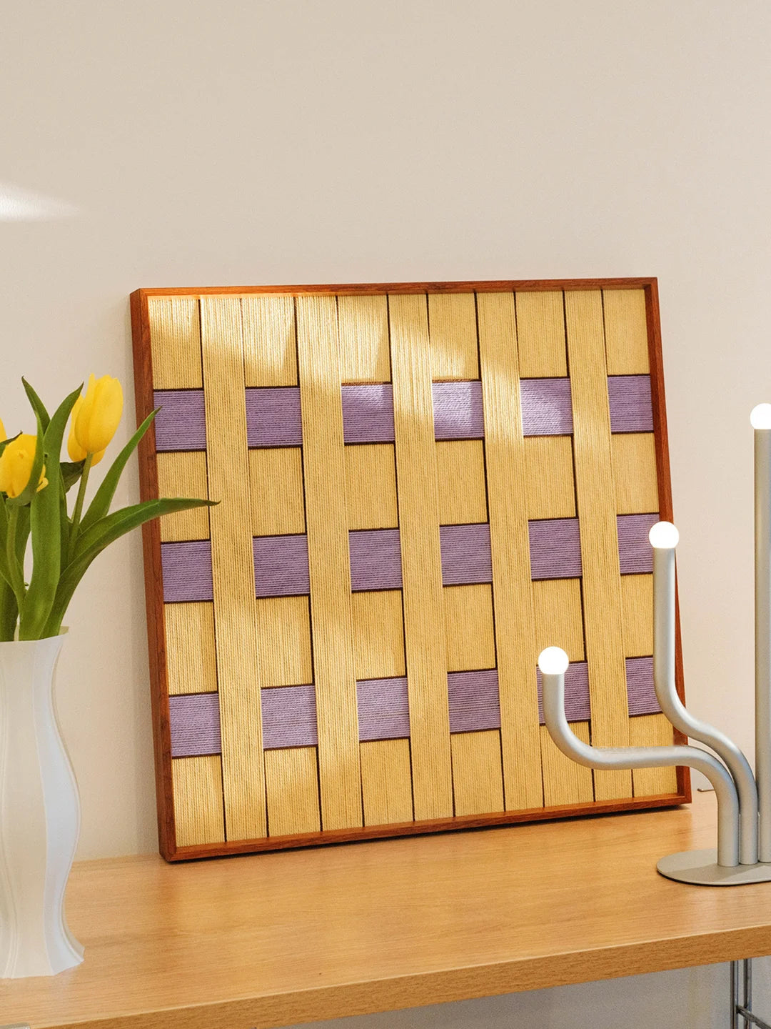 Invoke dawn’s lavender glow with Lavender Sunbeam. This 30 × 30 cm handwoven wall art panel features plush cotton-blend yarns in violet and buttery yellow—evoking petals kissed by first light. Framed in rich walnut with concealed hardware, this gallery-ready piece installs in minutes. The Lavender & Gold palette brings floral tranquility to living rooms, bedrooms or nurseries. Handcrafted texture and elegant hues make it an ideal botanical décor accent and thoughtful housewarming gift.